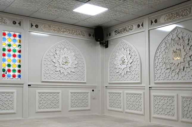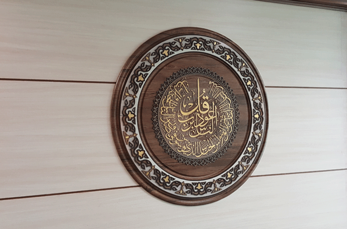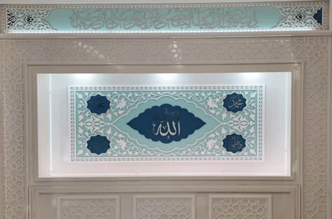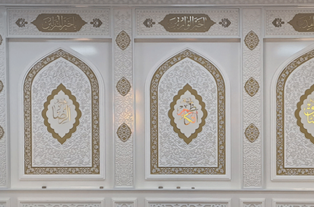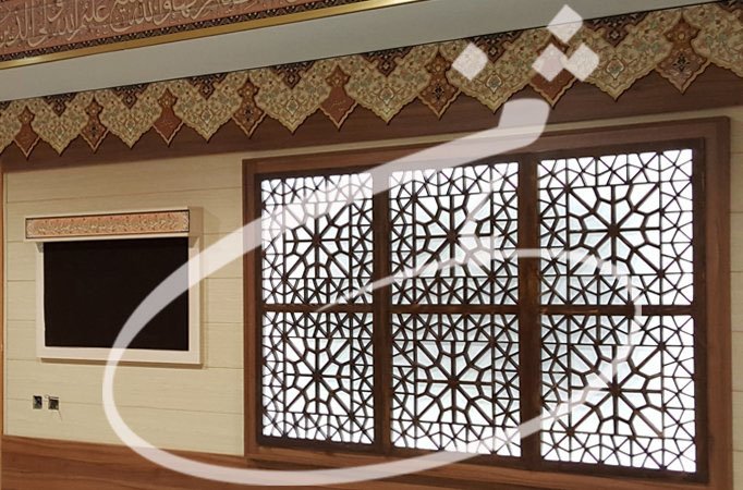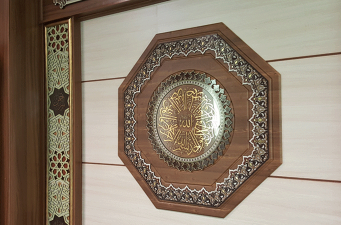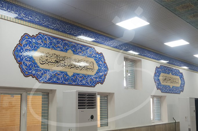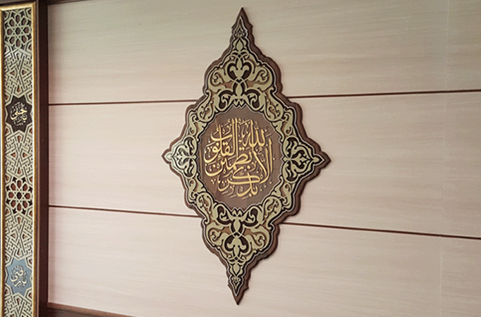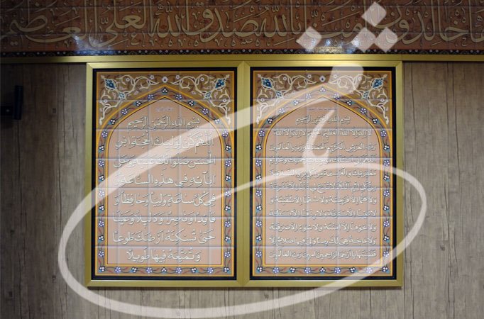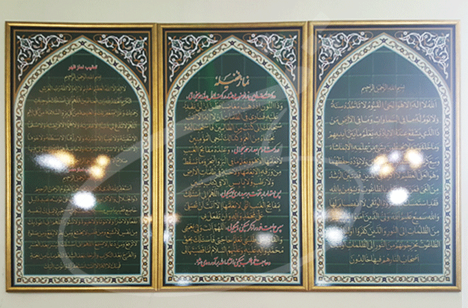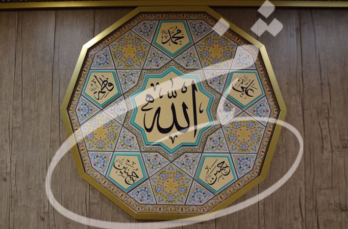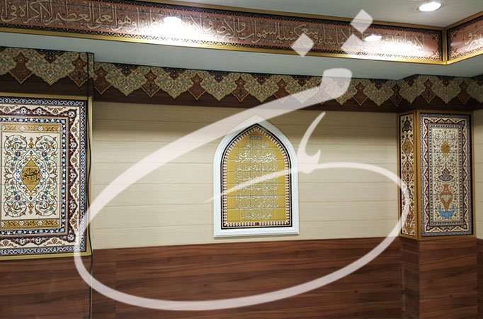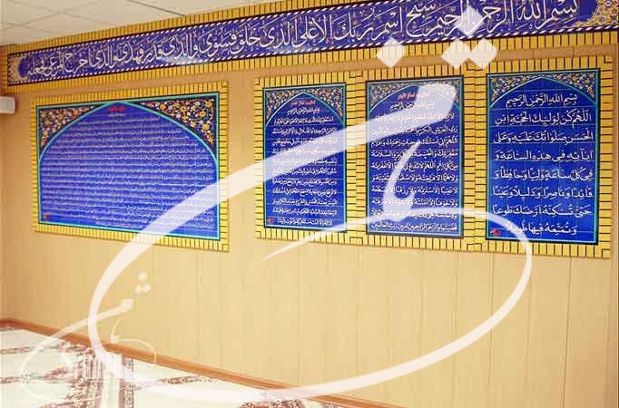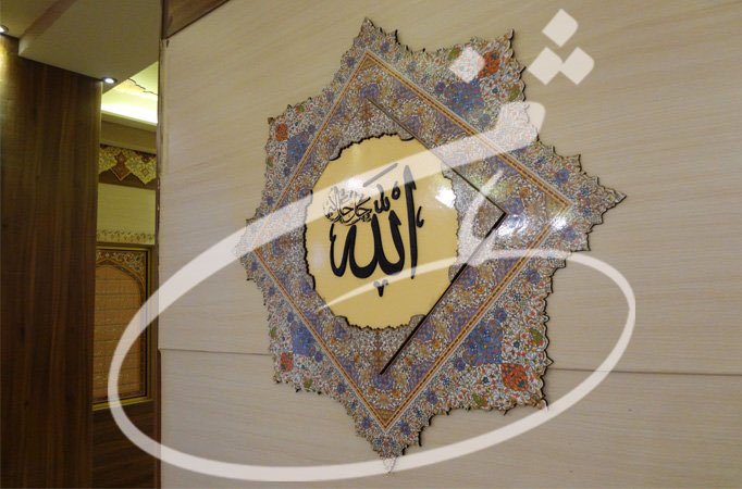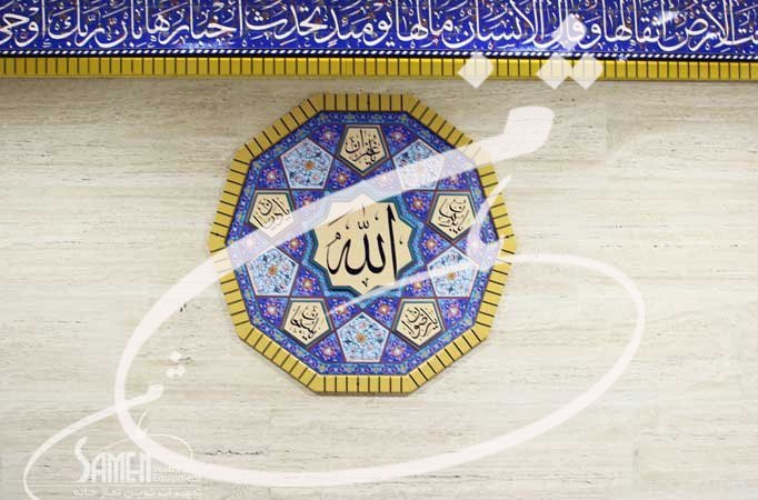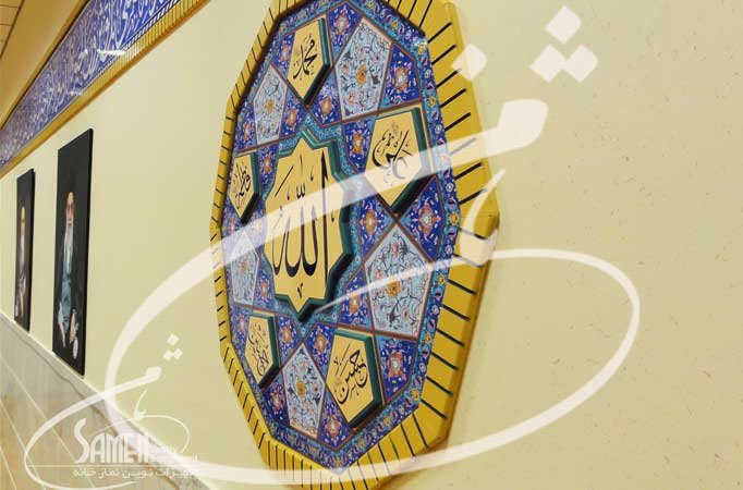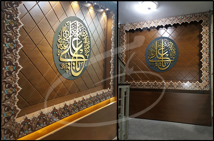 ابعاد 90 * 90 / جنس MDF برجسته / چاپ نقوش طرح سنتی به همراه اسماء / حاشیه