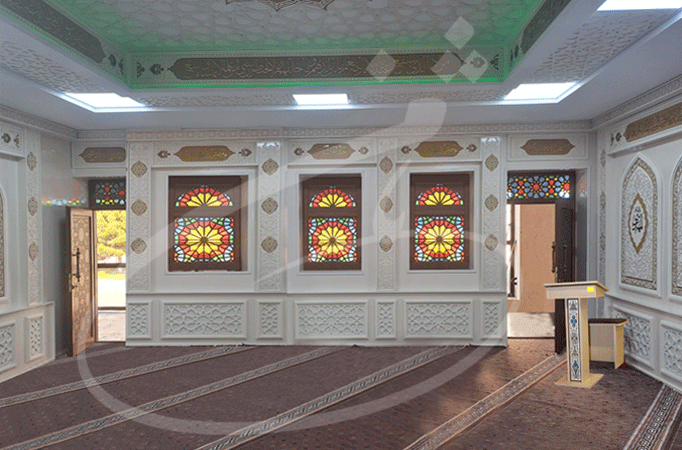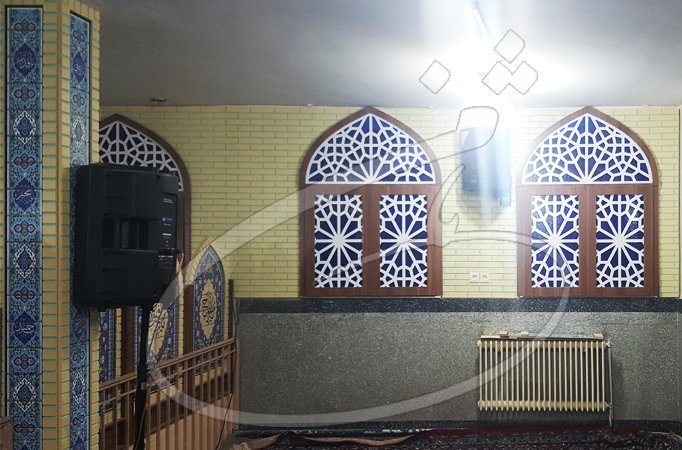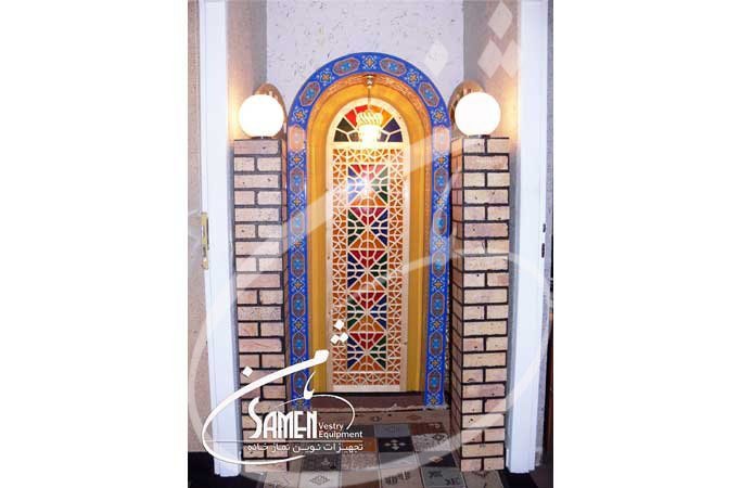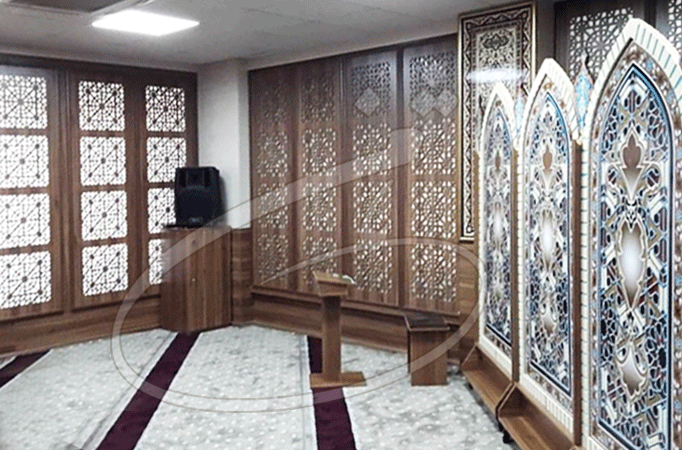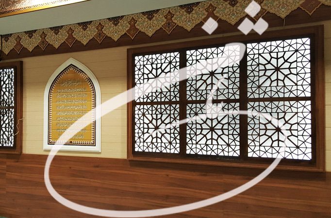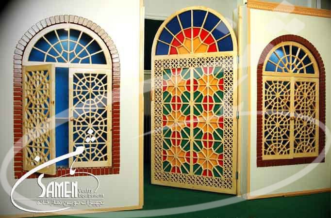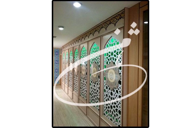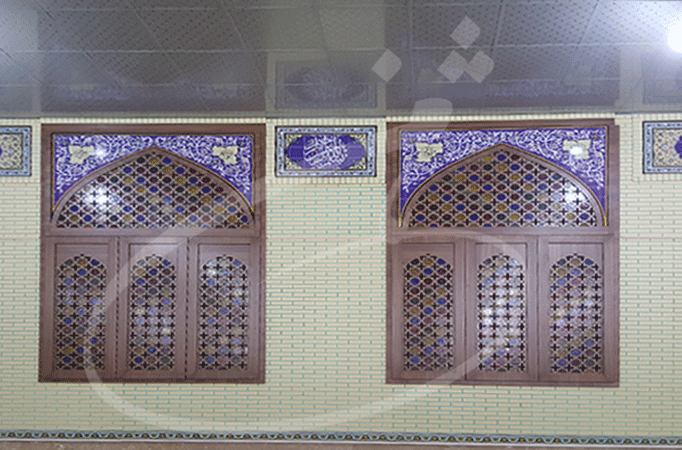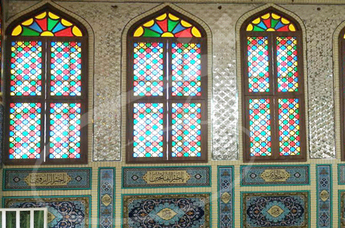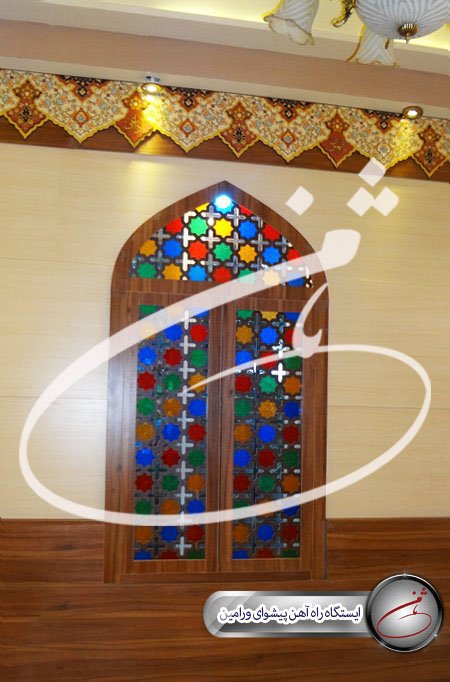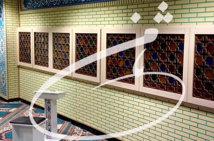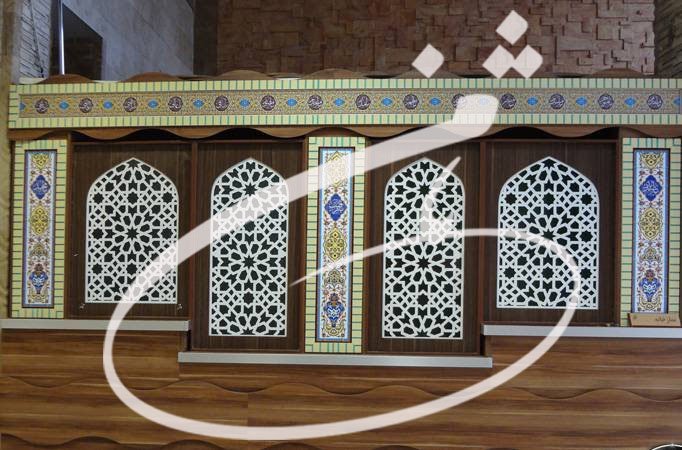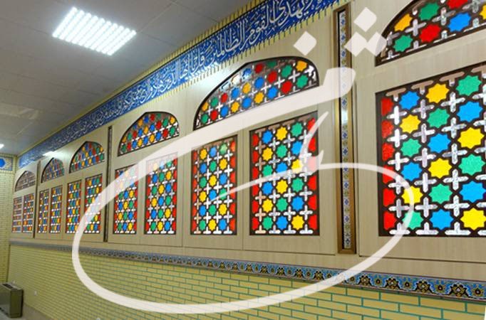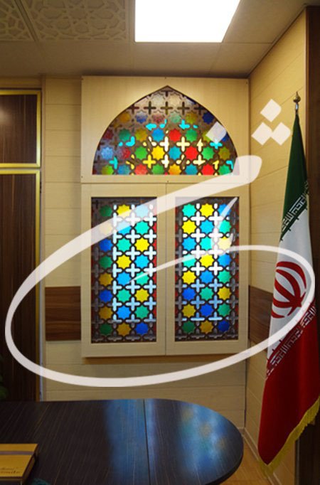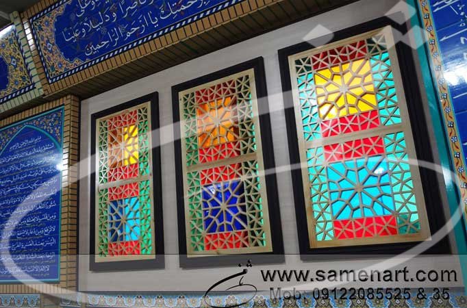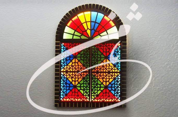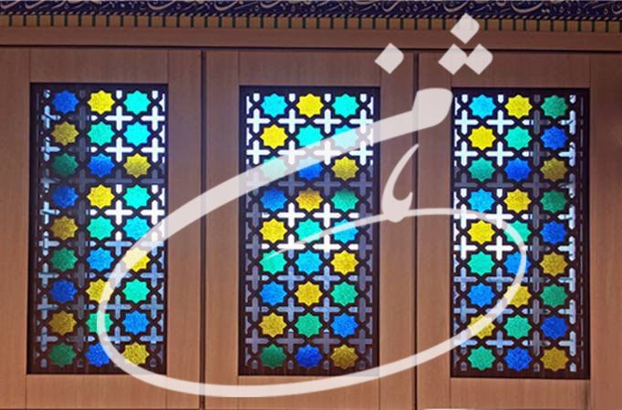 پنجره گره چینی : جنس MDF / CNC طرح گره چینی / پوشش پنجره با استفاده از تلق شیشه ای رنگی / برگرفته از